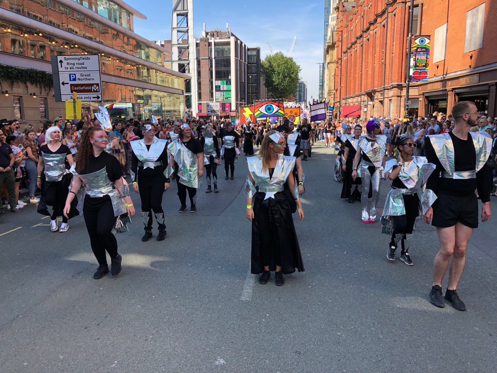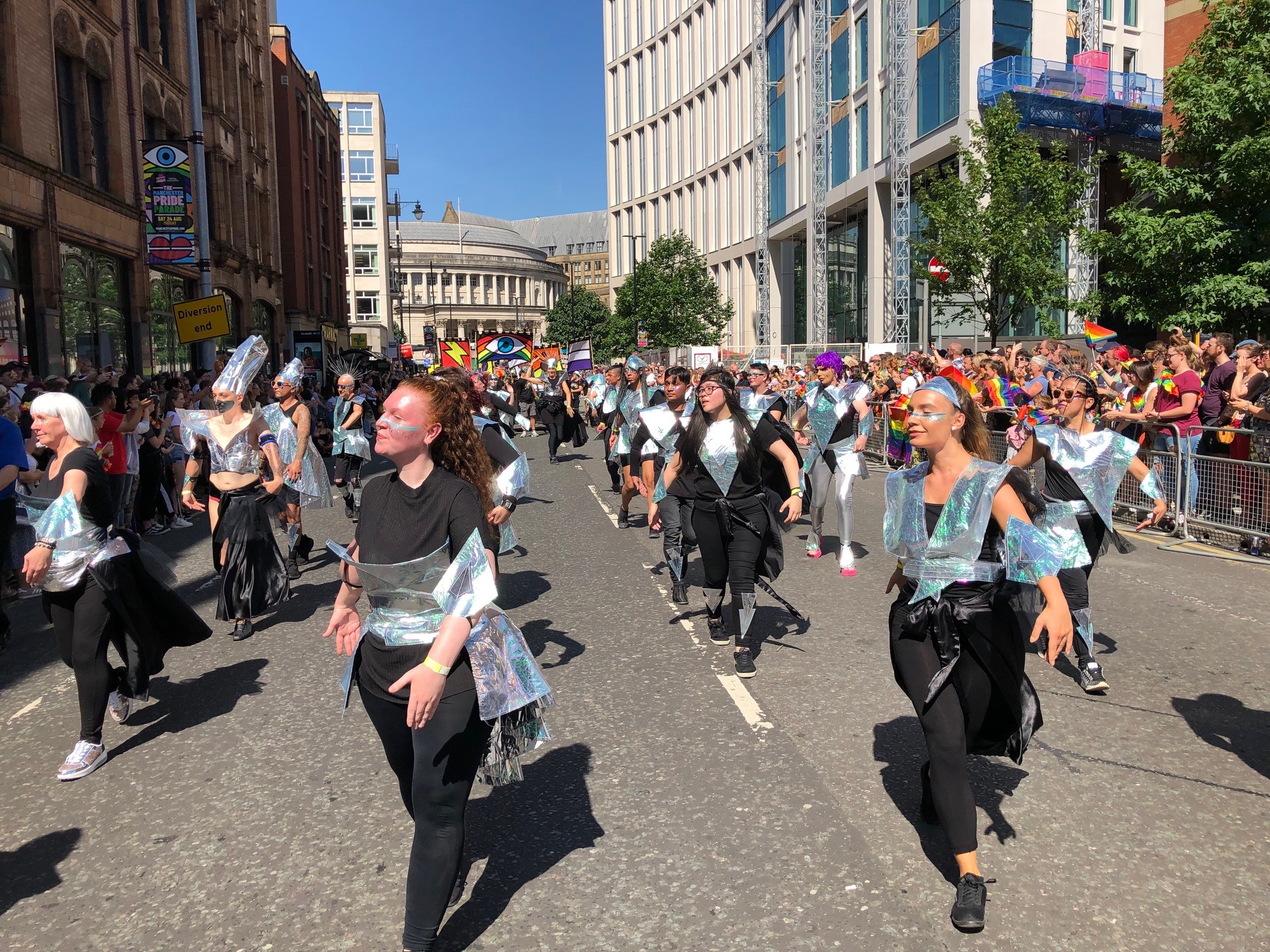 I was the lead artist on this project. Working to this years theme which was “Deep Space Pride: A future world of equality”, I designed, pitched and fabricated the costume elements as well as 16 reverse applique flags with Pride mcr's branding.
